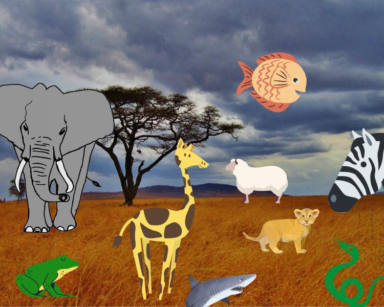 Animals in SavannahVersión en línea Escolta i fes clic al quadradet dels animals que són de la Sabana. por Carla Cano 1 Elephant 2 Zebra 3 Giraffe 4 Lion 5 Snake