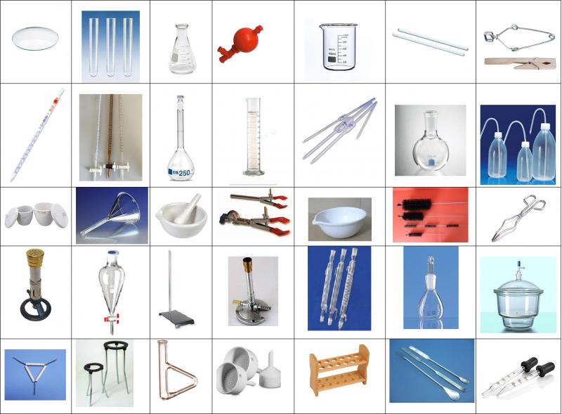 RECONOCIMIENTO DE MATERIAL DE LABORATORIOVersión en línea Elegir la respuesta correcta según corresponda por Marco Antonio Vega Atuesta 1 VIDRIO DE RELOJ 2 TUBO DE ENSAYO 3 ERLENMEYER 4 PIPETEADOR DE PERA 5 VASO DE PRECIPITADOS 6 VARILLA DE VIDRIO (AGITADOR DE VIDRIO) 7 PINZAS PARA TUBO DE ENSAYO 8 PIPETA GRADUADA 9 BURETA 10 MATRAZ AFORADO 11 PROBETA 12 PIPETA AFORADA 13 MATRAZ DE FONDO REDONDO (BALÓN DE REACCIÓN) 14 PISETA (FRASCO LAVADOR) 15 CRISOL 16 EMBUDO DE FILTRACIÓN (EMBUDO DE VIDRIO) 17 PINZAS PARA SOPORTE UNIVERSAL (PINZAS PARA BURETA) 18 CAPSULA DE PORCELANA 19 CHURRUSCO 20 PINZAS PARA CRISOL 21 MECHERO FISHER 22 EMBUDO DE DECANTACIÓN 23 SOPORTE UNIVERSAL 24 MECHERO BUNSEN 25 TUBO REFRIGERANTE (TUBO CONDENSADOR) 26 PICNOMETRO 27 DESECADOR 28 TRIANGULO DE PORCELANA 29 TRIPODE 30 TUBO DE THIELE 31 EMBUDO BUCHNER 32 GRADILLA 33 ESPATULA 34 GOTERO 35 MORTERO