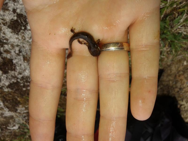 4 hanka eta isats luzea dituen narrasti bat da, orlegi kolorekoa da eta orban urdinxkak ditu. Bere harrapakinak harrapatzeko erabiltzen duen mihi luzea du.