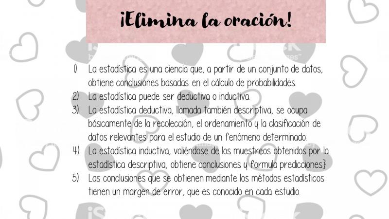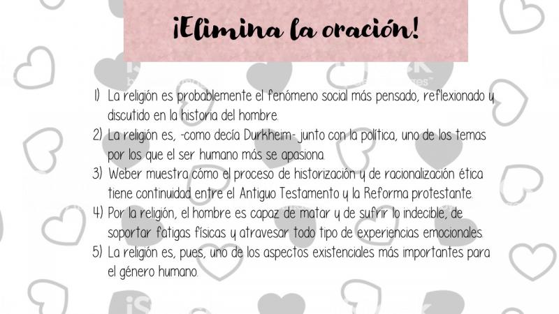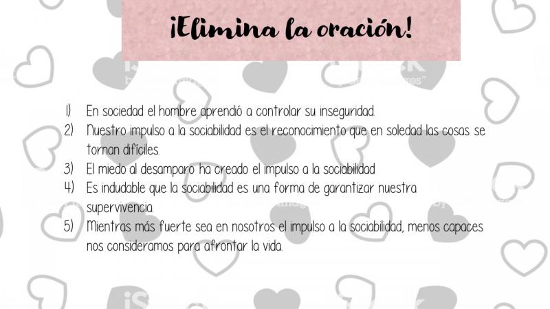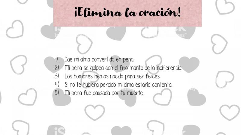 Oraciones EliminadasVersión en línea Elimina la oración que no tiene coherencia con las demás por valen 1 Pregunta n°1 a 2 b 4 c 5 d 3 e 1 2 Pregunta n°2 a 3 b 4 c 1 d 2 e 5 3 Pregunta n°3 a 4 b 5 c 1 d 3 e 2 4 Pregunta n°4 a 5 b 2 c 4 d 1 e 3 5 Pregunta n°5 a 2 b 5 c 3 d 1 e 4 6 Pregunta n°6 a 3 b 1 c 4 d 5 e 2 7 Pregunta n°7 a 4 b 5 c 2 d 1 e 3 8 Pregunta n°8 a 4 b 2 c 1 d 3 e 5 9 Pregunta n°9 a 1 b 2 c 3 d 4 e 5 10 Pregunta n°10 a 5 b 4 c 3 d 2 e 1