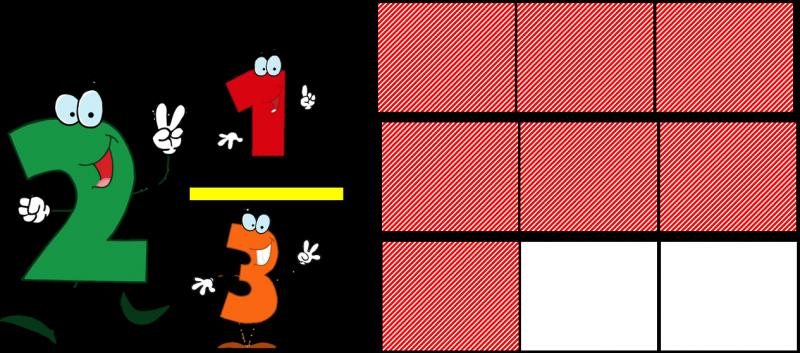 Práctica de fracciones Versión en línea Reforzar los conocimientos adquiridos sobre las fracciones. por MISHELL PALLO 1 3/10 + 5/10 = a 12/10 b 8/4 c 8/10 d 10/10 2 Ayer tomé las 2/8 partes de jugo y hoy me tomé las 3/8 de jugo. ¿Cuánto juego tomé en total? a 5/8 b 9/10 c 6/8 d 64/8 3 Compré una pizza me comí 7/15 de la pizza el día lunes,el martes me comí 2/5 partes de la pizza. ¿Cuántos pedazos me comí? a 10/15 b 13/15 c 11/15 4 5/9 + 2/3 = a 2/5 b 9/11 c 8/4 d 11/9 5 7/12 - 2/12 = a 14/12 b 14/12 c 5/12 d 1/12 6 5/9 - 1/3 = a 2/9 b 9/2 c 2/27 d 5/3 7 Convertir en numero mixto la fracción: 15/2 es igual a a 1 1/2 b 7 1/2 c 5 2/5 d 24/4 8 25/4 convertir a número mixto a 4 1/4 b 5 2/5 c 6 1/4 d 9/2 9 La diferencia entre 15/2 - 17/4 = (expresado en número mixto) a 26/98 b 60/8 c 3 2/8 d 3 1/4 10 Seleccionar la fracción que corresponde a la gráfica: a 1/3 b 3/7 c 7/3 d 14/9 Explicación 1 Las fracciones homogéneas se conserva el denominador y se suman los numeradores. 2 Las fracciones homogéneas se conserva el denominador y se suman los numeradores. 3 La suma y resta en fracciones heterogéneas se debe buscar el m.c.m. para resolver o sino multiplicar los denominadores. 4 Las fracciones heterogéneas se debe buscar el m.c.m. entre denominadores para resolver o sino multiplicar a los denominadores. 5 Las fracciones homogéneas se conserva el denominador y se restan los numeradores. 6 La resta entre fracciones heterogéneas se debe buscar el m.c.m entre denominadores o multiplicar a los denominadores. 7 Para convertir en número mixto se debe realizar la división. 8 Se debe realizar la división, el cociente es el número entero mientras que el residuo es el numerador y el divisor es el denominador. 10 Para convertir de número mixto a fracción se debe multiplicar la parte entera por el denominador y sumar el numerador, y ese resultado pasa a ser el numerador y el denominador se mantiene.