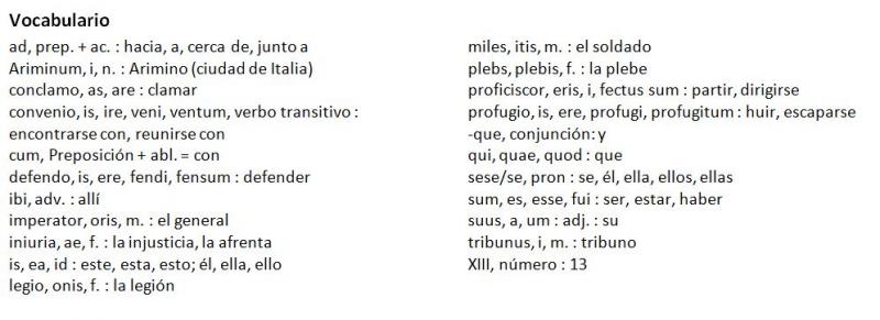 Agrupa las palabras que van juntas: Ariminum cum ea legione proficiscitur ibique tribunos plebis, qui ad eum profugerant, convenit.
