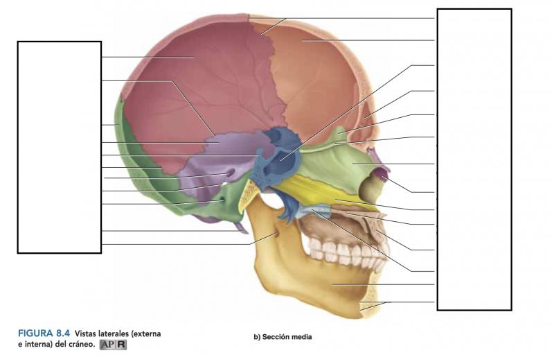 Cráneo Pt 3 Versión en línea Sistema óseo por Aristóteles Gijón 1 Hueso temporal 2 Sutura parietotemporal 3 Hueso occipital 4 Hueso temporal 5 Silla turca 6 Sutura parietooccipital 7 Conducto auditivo interno 8 Agujero yugular 9 Conducto hipogloso 10 Apófisis estiloides 11 Agujero mandibular 12 Sutura coronaria 13 Sutura coronaria 14 Hueso frontal 15 Seno esfenoidal 16 Seno frontal 17 Cresta de gallo 18 Lámina cribosa del etmoides 19 Lámina vertical del etmoides 20 Hueso propio de la nariz 21 Vómer 22 Apófisis palatina del maxilar superior 23 Maxilar superior 24 Hueso palatino 25 Mandíbula 26 Espinas mentonianas