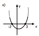 Funciones de segundo grado 2Versión en línea Para resolver estas actividades es necesario que utilicen los conocimientos del tema, no es necesario graficarlas. Material adaptado de "recursos didácticos" por Maria Laura Lezama 1 Indica cual es la gráfica de: f(x)= ax^2 + 3x +30 siendo "a" mayor a cero a Opción a b Opción b c Opción c d Opción d 2 Cual es la posible gráfica de f(x)=x^2-100 a Opción a b Opción b c Opción c d Opción d 3 Cual es el gráfico de f(x)= (x-3)(x-2) a Opción a b Opción b c Opción c d Opción d 4 Indica la gráfica de x^2+2x+1 a Opción a b Opción b c Opción c 5 Cuál es el VALOR DE X del vértice de f(x)= x^2-3x+1 a 3/2 b -3/2 c 3 d -3 6 ¿Cuál es el valor MÍNIMO (vértive) de f(x)=x^2+8x+15? a -1 b -4 c 1 d 4 7 ¿cuáles son las coordenadas del vértice de f(x)= x^2-4x+3? a (2,-1) b (-1,2) c (-2, 15) d (15,-2) Explicación 6 Cuand se habla del valor máximo/mínimo de una función se refiere a la coordenada Y