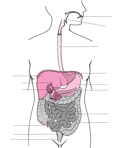 Sistema DigestivoVersión en línea pra 5to grado por mariana amaya 1 Las principales funciones del sistema digestivo son a Ingestión y digestión b Propulsión y digestión de jugos c Absorción y eliminación d todas las anteriores 2 Todos los siguientes, son los órganos del sistema digestivo, exccepto el a Estómago b Nariz c Intestino Delgado d Intestino Grueso 3 ¿Cuáles son las glándulas anexas? Selecciona la incorrecta a Glandulas Salivales b Páncreas c Hígado d estómago 4 Proceso de Absorción a Yeyuno b Duodeno c Ileon 5 ¿En qué parte se produce la Egestión? a Intestino Delgado b Intestino Grueso 6 La boca constituye la entrada a dos sistemas que son : a digestivo y cardíaco b digestivo y respiratorio c respiratorio y cardíaco 7 Tubo muscular que conecta la garganta con el estómago: a laringe b esófago c faringe 8 ¿Qué nombre recibe la masa en que se transforman los alimentos dentro del estómago por la digestión? a Quimo b Quilo c Bilis 9 ¿Cómo se denomina al esfínter que se encuentra en la entrada del estómago? a Cardias b Píloro c Duodeno 10 Cuando el Quimo sale del estómago por el píloro ¿A donde va? a Intestino Delgado b Intestino Grueso