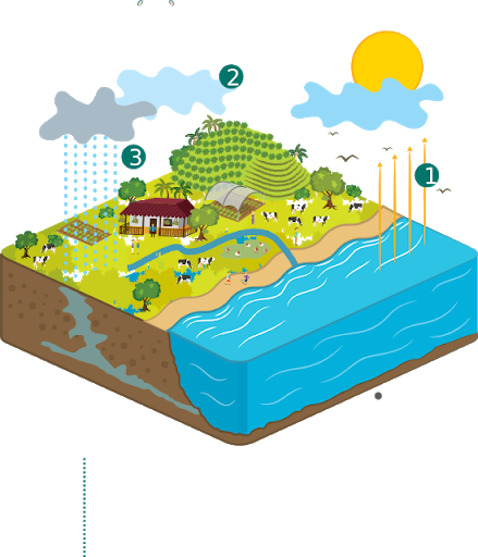 Agua potable Versión en línea Como nace el agua. por Jhon Jairo Diaz 1 Evaporación 2 Condensación 3 Precipitación 4 Infiltración 5 Flujo de agua subterráneas