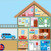 Relacionar Columnas MATCH THE WORDS Versión en línea Match the words to the pictures about the parts of the house. por fernando rosario 1 2 3 4 5 6 Garage House Bathroom Dining room Living room Kitchen
