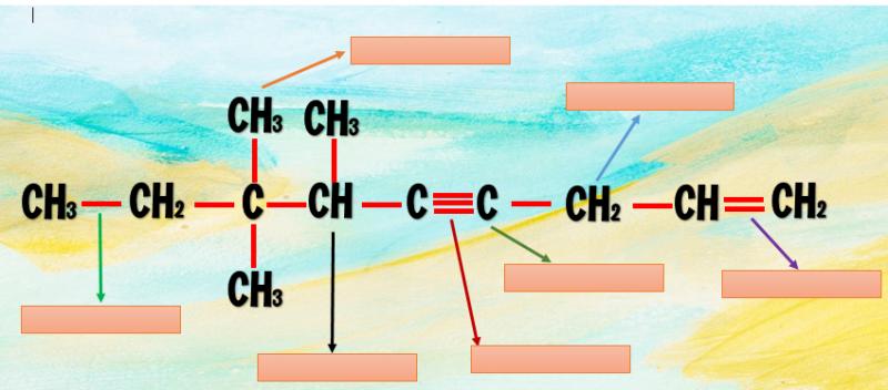 EL CARBONOVersión en línea ¡BIENVENIDO! A continuación tendrás que señalar el nombre de cada tipo de enlace y tipo de carbono ,según la imagen presentada. ¡Vamos! ¡Tú puedes! por Lorena Stephany VALENTIN CACHIQUE 1 Enlace Simple 2 Carbono Terciario 3 Carbono Primario 4 Enlace Triple 5 Carbono Cuaternario 6 Carbono Secundario 7 Enlace Doble