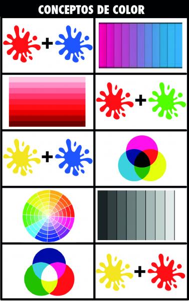 Conceptos de colorVersión en línea Relaciona las imágenes con los conceptos de color correspondientes. por Paola Zardain 1 Color verde 2 color naranja 3 color morado 4 Círculo cromático 5 Colores luz 6 Colores pigmento 7 Escala monocromática 8 Escala acromática 9 Escala policromática 10 color café