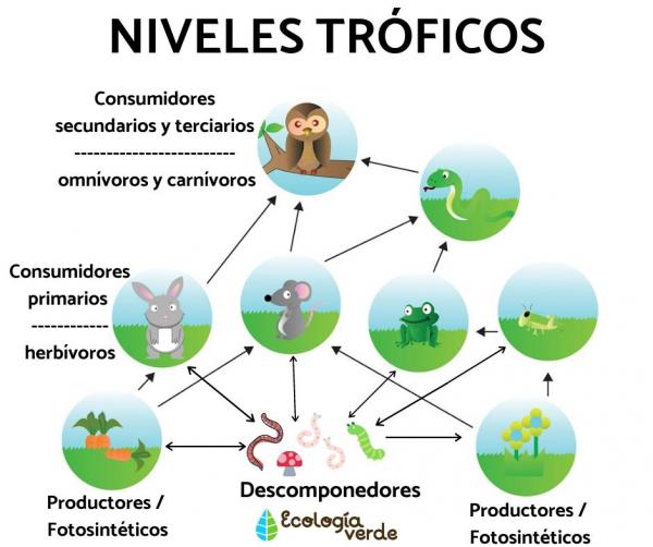 REDES TRÓFICAS Versión en línea OBSERVA LA PRESENTACIÓN SOBRE TEMA REDES TRÓFICAS por Paola Ciambelli 1 REDES TRÓFICAS Una forma de relación entre los seres vivos, es dónde unos comen a otros conservando la HOMEOSTASIS ECOLÓGICA(La homeostasis ecológica se caracteriza por el equilibrio dinámico que existe entre las comunidades naturales y su medio)Las Redes tróficas son una forma de relación inter-específica en un ecosistema 2 REDES O CADENAS No es lo mismo hablar de red que cadena trófica. Si se observa en la imagen podemos apreciar la diferencia en su formación.Una red trófica es un conjunto de cadenas tróficas que podemos encontrar en un ecosistemas. 3 RED TRÓFICA 4 NIVELES TRÓFICOS * Productores: son quiénes producen materia orgánica a partir de inorgánica. Son las plantas, algas y cianobacterias. *Consumidores 1°: son lo HERBÍVOROS quiénes comen productores.*Consumidores 2°: son los CARNÍVOROS quiénes comen carne.*Consumidores 3°: son los OMNÍVOROS quiénes comen carne y productores.*Descomponedores: HONGOS y BACTERIAS. Descomponen la materia orgánica en inorgánica que luego usaran los productores 5 Niveles tróficos 6 redes