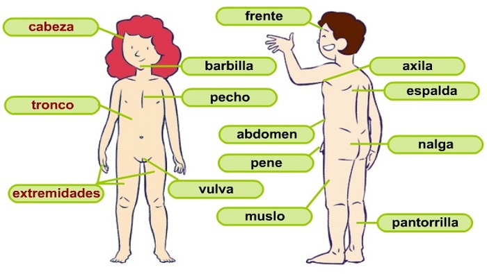 Esquema corporalVersión en línea Identifica las partes del cuerpo humano. por Mary Alvarez 1 cabeza 2 tronco 3 extremidades 4 barbilla 5 pecho 6 vulva 7 frente 8 axila 9 espalda 10 abdomen 11 nalga 12 pene 13 muslo 14 pantorrilla