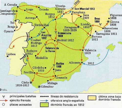 Guerra de la IndependenciaVersión en línea Es un mapa donde transcurre las batallas de la Guerra de Indepedencia por Cristian Pérez illescas 1 derrota del Ejercito frances por el ejercito español 2 ciudad en la que se convocaron las cortes 3 2 de mayo de 1808 4 motin de Aranjuez