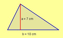 Cálculo del áreaVersión en línea Practique el cálculo del área del cuadrado, rectángulo, triángulo y rombo. por Fernando Antonio Ramirez Lugo 1 La fórmula A = l x l, ¿A qué figura pertenece? a cuadrado b rectángulo c rombo d triángulo 2 La fórmula A= b x h ¿A qué figura corresponde? a cuadrado b rectángulo c rombo d pentágono 3 ¿A qué figura corresponde la fórmula A = b x h /2 ? a cuadrado b rectángulo c rombo d triángulo 4 A = D x d / 2 es la fórmula del ... a rectángulo b rombo c cuadrado d triángulo 5 ¿Cuál es el área del siguiente rectángulo? a 14 unidades b 12 unidades cuadradas c 12 unidades d 14 unidades cuadradas 6 ¿Qué figuras de las siguientes tiene 20 cm cuadrados de área? a roja b amarilla c verde d azul 7 ¿Cuál es el área del siguiente triángulo? a 17 cm cuadrados b 24 cm cuadrados c 35 cm cuadrados d 70 cm cuadrados 8 ¿Cuál es el área de una cuadrado que tiene 10 cm de lado? a 100 cm cuadrados b 100 cm c 40 cm cuadrados d 50 cm cuadrados Explicación 2 Recuerda que para calcular el área de un rectángulo, hay que multiplicar la base por la altura 3 Recuerda que se aplica la misma fórmula del rectángulo, sólo que agregando, dividido entre dos pues caben dos triángulos iguales en un rectángulo. 4 Recuerda que el Rombo consta de dos diagonales llamadas, diagonal mayor y diagonal menor 7 Recuerda que la fórmula para calcular el área del triángulo es A= b x h /2 8 Recuerda que la fórmula para calcular el área de un cuadrado es A=lxl