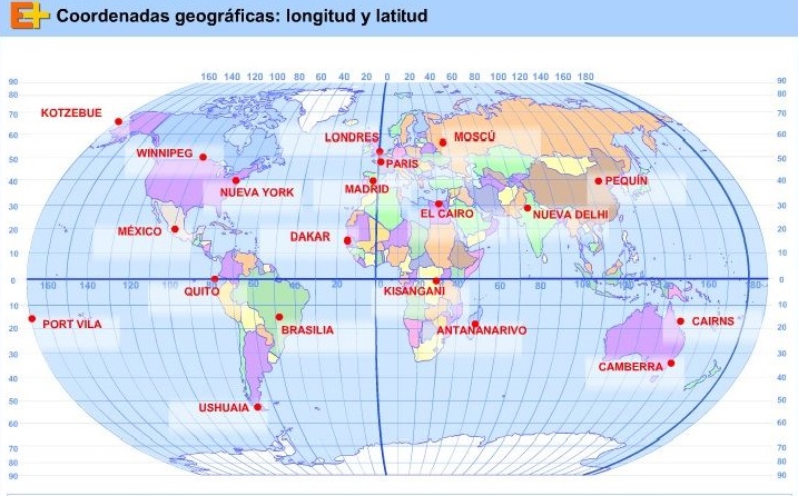 Localización de lugaresVersión en línea Localiza lugares mediante las coordenadas geográficas. por Ana Karen Alvarado Camacho 1 Lugar que se encuentra en la coordenada 19° norte con 99° oeste. 2 Encuentra el lugar a partir de la siguiente coordenada: latitud 56° N y longitud 37° E 3 Qué lugar se encuentra entre la latitud 34° sur y longitud 152° este 4 Ubica el lugar a partir de la siguiente coordenada geográfica: latitud 15° norte y longitud 17° oeste. 5 Qué lugar se encuentre en la latitud 16° sur con 48° oeste. 6 Qué lugar se encuentra entre la latitud 28° norte y longitud 77° este. 7 Lugar que se encuentra en la coordenada geográfica, latitud 0° y longitud 79° oeste. 8 Qué lugar se encuentra en la siguiente coordenada geográfica: latitud 39°N y longitud 116°E
