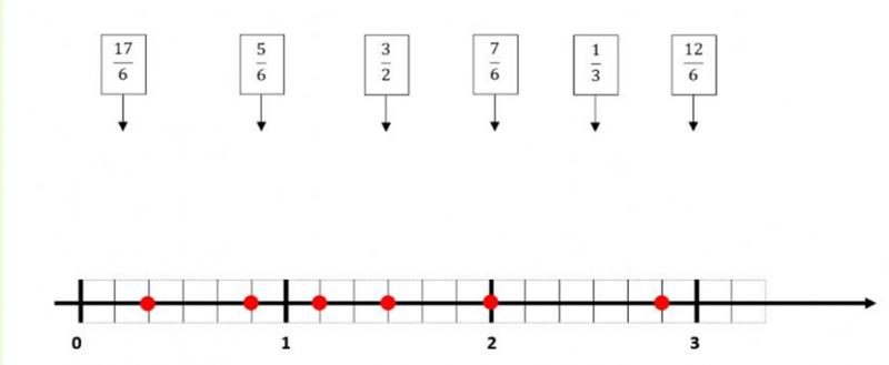 Recta y fracciones Versión en línea Ubica las fracciones en la siguiente recta numérica según corresponda. por ANA KAREM ROSAS AYALA 1 2 3 4 5 6 1 2 3 4 5 6