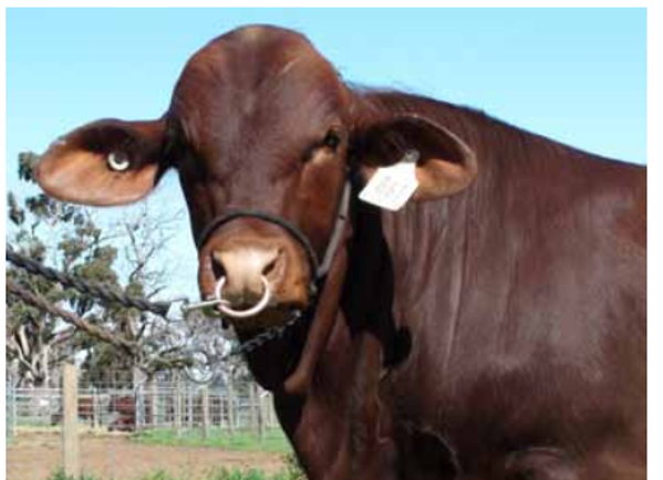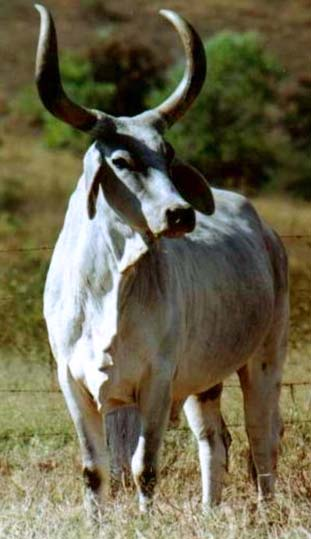 3. Se caracteriza por ser de color rojo, la cabeza, el vientre y las partes bajas de las patas de color blanco. Cuernos grandes direccionados hacia adelante con agudas puntas. El peso vivo del toro adulto es aproximadamente de 1000 k, la vaca adulta tiene un peso vivo de 675 K. El peso de la cría macho al nacer es de 36 k y las hembras 33 k. Consumen pasto sin dificultad.