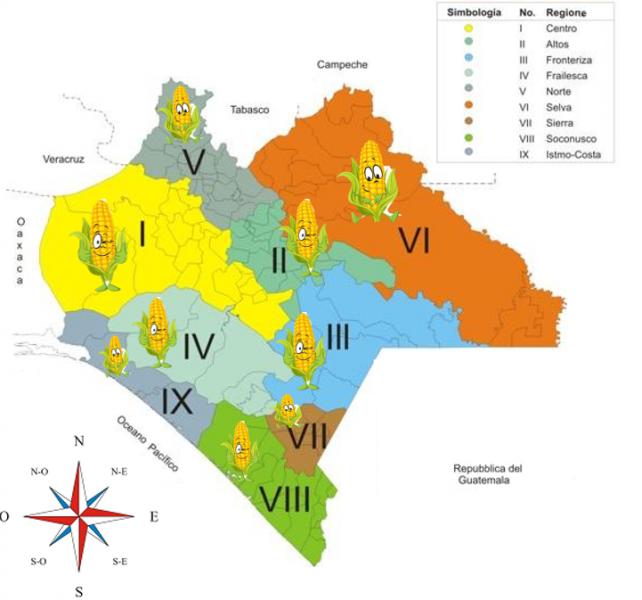 CULTIVO DE MAÍZ EN CHIAPASVersión en línea Conocer las regiones del estado de Chiapas que son muy buenas productoras de maíz y las que son buenas por Patricia del Carmen Salas Sarmiento 1 I CENTRO 2 V NORTE 3 III FRAILESCA 4 VI SELVA 5 VIII SOCONUSCO 6 VII SIERRA