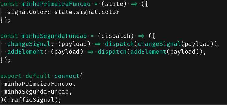 Redux?Versión en línea Quizz para testar o seu progresso até aqui em Redux. por Ícaro Pinto Coelho Harry 1 Quais dessas NÃO é uma vantagem do Redux? a Estado global acessível a todos os componentes b Aumenta a performance da aplicação c Evita o prop drilling d Facilita o gerenciamento do estado da aplicação 2 Qual dessas opções NÃO faz parte do Redux? a Store b Action c Reducer d Context 3 Esse trecho de código é: a Uma action b Um reducer c Uma store d Um state 4 A função "minhaFuncao" é: a Uma action b Um reducer c Uma store d Um state 5 Qual a função utilizada pra inicializar uma store do Redux? a initStore() b storeInit() c newStore() d createStore() 6 Qual é a lib utilizada para conectar o Redux com o React? a react-redux b redux-react c reactx d Não é necessária nenhuma outra lib além do Redux 7 Qual função da lib react-redux é reponsável por fazer a conexão do Redux com o React? a mapStateToProps b mapDispatchToProps c connect d createStore 8 "minhaSegundaFuncao" é uma função que, por padrão, é chamada de: a mapStateToProps b mapPropsToState c mapActionsToProps d mapDispatchToProps 9 Para que serve o redux-thunk? a Para conseguir criar actions assíncronas b Para simplificar o uso do Redux c Para substituir a react-redux d Para conseguir criar actions síncronas 10 Quais dessas opções estão de acordo com o princípio da IMUTABILIDADE do state? Escolha uma ou mais respostas a b c d Explicação 1 O Redux pode facilitar em vários pontos o desenvolvimento de aplicações React, mas não necessariamente traz um aumento de performance, tendo em vista que é uma dependência a mais do seu projeto. 2 Context é uma outra API do React e não está diretamente relacionada com Redux 7 mapDispatchToProps e mapStateToProps são parâmetros da função connect()