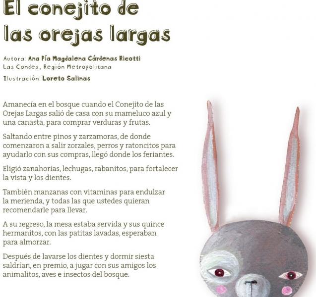 COMPRENSIÓN LECTORA Versión en línea Quiz interactivo-Comprensión Lectora-EL CONEJITO DE LAS OREJAS LARGAS por Gabriela Cubides Gil 1 LECTURA EL CONEJITO DE LAS OREJAS LARGAS a El conejo de las orejas largas b El conejo de las orejas largas 2 ¿Porque el conejitos come zanahorias,lechuga y rabanitos? a Porque su mamá lo obligaba b Para cuidar sus orejas y sus uñas c Para cuidar su vista y sus dientes d Para cuidar su pelo y su vista 3 ¿De que color es el mameluco del conejitos? a Azul b Rojo c Amarillo d Verde 4 ¿Cuantos hermanos tiene el conejito? a 14 b 12 c 15 d 13 5 ¿Que animales ayudaron al conejo en sus compras? a Ratoncitos,ardillas y conejos b Zorzales,perros y ratoncitos c Liebres,ardillas y conejos d Pájaros, perros y gatos 6 ¿Que debe hacer el conejo para salir con sus amigos? a Recoger la mesa y lavar los platos b Realizar sus tareas y lavarse las manos c Comportarse bien durante todo el día d Lavarse los dientes y dormir la siesta