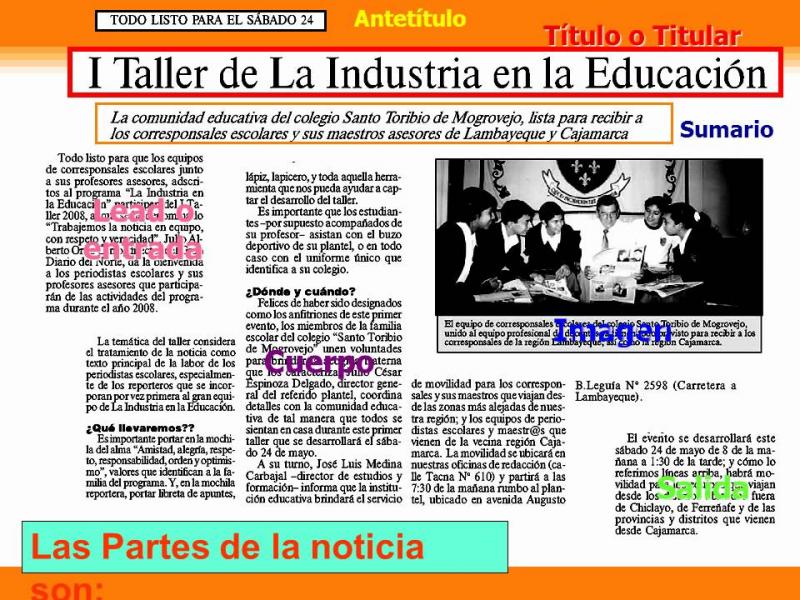 estructura básica de redacción de una noticia es la siguiente: