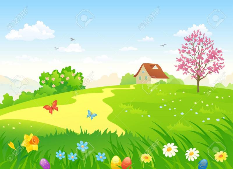 PrimaveraVersión en línea identica por Ingrid Romero 1 mariposa naranja 2 árbol 3 ave 4 arbusto con flores 5 mariposa azul 6 casa 7 nube 8 flor amarilla 9 flor blanca 10 flor azul 11 cielo