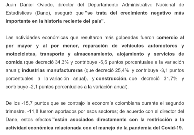 Juego economiaVersión en línea Juego economia Esteban Buitrago, Felipe orjuela grado 10|03 por Esteban Buitrago 1 De acuerdo a la tabla de proyecciones de crecimiento económico (2020)¿Qué países tendrán la mayo caída? Respuesta escrita 2 ¿Que actividad economica tuvo un menor descenso? a Construcción b Industrias Manufactureras c Reparación de vehículos automotores y motocicletas d Comercio al por mayor y al por menor 3 de acuerdo al texto cuales fueron los sectores que tuvieron un crecimiento frente al mismo trimestre del año Respuesta escrita 4 ¿Que porcentaje se registro el desempleo en enero de 2020? Escoge una o varias respuestas a 47% b 28% c 13% d 25%