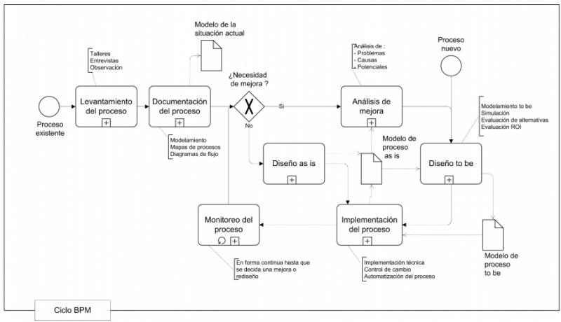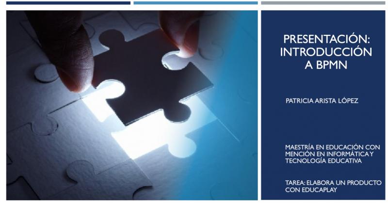 Introducción a BPMNVersión en línea Introducción a BPMN por Patricia 1 Presentación 2 ORGANIZACIÓN TRADICIONAL Desarrolla una visión horizontal de la empresa.No tienen en cuenta los procesos y las interrelaciones entre estos factores.Cada área tiene sus propios indicadores no integrados. 3 Caso que no usa BPM 4 ORGANIZACIÓN ORIENTADO A PROCESOS Desarrolla una visión horizontal de la empresa.La operación de la compañía esta centrada en los procesosEl dueño del proceso es el que conoce el proceso desde inicio a fin, por lo que puede analizar los indicadores 5 OBJETIVOS DE BPM BPM = BUSINESS PROCESS MANAGMENT (GESTIÓN DE PROCESOS EMPRESARIALES)Mejorar la eficiencia a través de la gestión de procesos.Considerando procesos modelados, automatizados,integrados,monitoreados y optimizados continuamente.Facilitar la toma de decisiones, la administración, la operación el control y la automatización.Facilitar el entendimiento, diseño, ejecución, optimización de las actividades de negocios. 6 ¿QUE ES BPMN? BPMN = BUSINESS PROCESS MODEL AND NOTATION (MODELO Y NOTACION DE PROCESOS DE NEGOCIO)Es una notación gráfica que describe la lógica de los pasos de un proceso de Negocio. Esta notación ha sido especialmente diseñada para coordinar la secuencia de los procesos y los mensajes que fluyen entre los participantes de las diferentes actividades. 7 CICLO BPM 8 BIBLIOGRAFÍA Freund, J., Rucker B. & Hitpass, B. (2017). BPMN Manual de Referencia y Guía Práctica Con una introducción a CMMN y DMN. Santiago. Chile.Hernández, H, Martinez, D. & Cardona D. (8 de setiembre de 2015). Enfoque basado en proceso como estrategia de Dirección para las empresas de transformación. Saber, ciencia y libertad. Recuperado de https://dialnet.unirioja.es/servlet/articulo?codigo=5847006Bizagi Español. (Productor). (2015). ¿Qué es BPMN?. De https://www.youtube.com/watch?v=x5k67iBzSYgGo-Host México. (Productor). (2019). Explicación de BPM con ejemplo práctico. De https://www.youtube.com/watch?v=VjWTo9QZo98