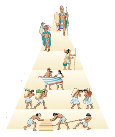 La sociedad AztecaVersión en línea Estructura estatal de los Aztecas por Milva Funes 1 rey o tlatoani 2 Jefes administrativos y sacerdotes 3 Jefes militares 4 pochitecas o comerciantes 5 Campesinos y artesanos (macahuales) 6 Siervos y esclavos