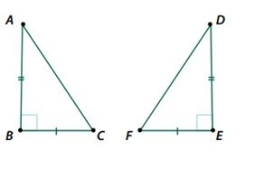 Recuperación Matemáticas 8ºVersión en línea Esta prueba se presenta como sustentación de los temas abordados en la guía de recuperación: multiplicación de expresiones algebraicas, productos notables, congruencia y semejanza de triángulos. por Karen Rodriguez 1 Al resolver la siguiente multiplicación se obtiene: a 6x²y – 9x²y² + 12x²y³ b -6x³y – 9x⁴y² + 12x³y³ c -6x²y – 9x²y² + 12x²y³ d 6x³y – 9x⁴y² + 12x³y³ 2 El área del rectángulo de la figura es: a 5ab b 6ab c 2a+3b d 6a+b 3 Los triángulos de la figura son congruentes en virtud del criterio: a AA b ALA c LAL d LLL 4 Los ángulos señalados en la figura son congruentes porque: a Son agudos y miden menos de 90º. b Son rectos y miden exactamente 90º. c Son agudos y miden exactamente 90º. d Son rectos y miden menos de 90º. 5 La expresión 49 – 4x² es equivalente a: a (7+4x)(7-4x) b (7+2x)² c (7-4x)² d (7+2x)(7-2x) 6 Teniendo en cuenta el producto notable (x+a)(x+b)= x² +(a+b)x +ab, se puede afirmar que si un terreno tiene las siguientes dimensiones x²-1 y x²+20, entonces el área del terreno se puede expresar como: a x⁴ +19x²-20 b x⁴ +19x²+20 c x⁴ -19x²+20 d x⁴-19x²+20 7 En los triángulos de la figura la relación de proporcionalidad de los lados está dada por: a b c d 8 En la realidad el largo de un auto es de 4,2 m; si se quiere hacer una maqueta a escala 1:200, el largo del auto deberá ser de: a 2,1 cm b 21cm c 4,2 cm d 42 cm 9 Los triángulos de la figura son semejantes en virtud del criterio: a ALA b LAL c AA d LLL 10 El piso de un salón de clase tiene dimensiones 4n³ y n²+m+a, tal como se muestra en la figura, para calcular el área del piso se debe: a calcular el producto 4n³● (n²+m+a). b Calcular la suma 4n³+ (n²+m+a). c Calcular la diferencia 4n³- (n²+m+a). d Calcular el cociente 4n³÷ (n²+m+a).
