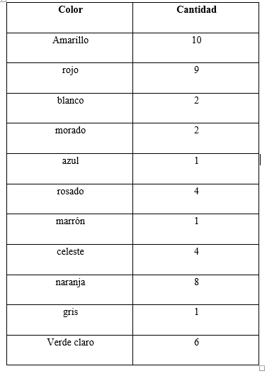 probabilidadVersión en línea Estadística- historia de probabilidad por christian salazar 1 ¿cuál es la probabilidad del que el mago presente el show con el cabello de color rosa? a A) 1/48 b B) 1/12 c C) 4/48 d D) 5/12 2 ¿cuál es la probabilidad del que el mago presente el show con el cabello de color amarillo? a A) 9/48 b B) 1/48 c C) 5/ 24 d D) 34/5 3 Si no se tienen en cuenta los colores celeste y blanco ¿cuál es la probabilidad de que salga con el cabello de color verde claro? a A) 1/7 b B) 48/7 c C) 10/43 d D) 1/77 4 ¿cuál es la probabilidad del que el mago presente el show con el cabello de color naranja? a A) 22/7 b B) 2/9 c C) 6/4 d D) 1/6 5 ¿Si no se tienen en cuenta los colores amarillo y rojo ¿cuál es la probabilidad de que salga con el cabello de color celeste? a A) 45/6 b B) 1/6 c C) 4/29 d D) 1/9