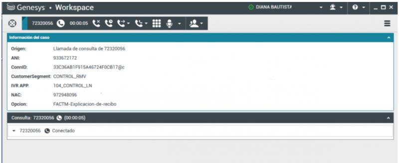 Aplicativo GenesysVersión en línea Indicaremos en la imagen el lugar donde se encuentra la respuesta. por Maria Noa rojas 1 Señala en la imagen la opción que me permite cortar la llamada. 2 Indica la opción que me permite mantener la llamada en espera o Hold. 3 Indica en la imagen la opción que me muestra el estado en el que se encuentra el asesor. 4 indica en la imagen la opción que me muestra el numero llamante. 5 Indica en la imagen la opción que me muestra el numero en consulta. 6 Indica en la imagen la opción que me muestra el tiempo de la llamada.