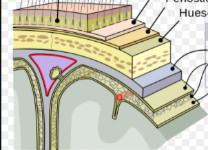 Duramadre, espesa y fibrosa, unida al periostio craneal. Aracnoides, muy fina, sin vasos sanguíneos, aunque atravesada por vasos sanguíneos hacia la piamadre y por último Piamadre, capa vascular en estrecho contacto con el encéfalo, siguiendo el contorno del tejido cerebral.