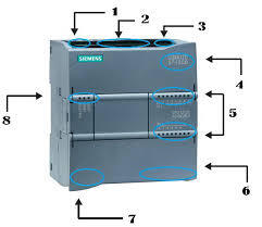 partes externas plcVersión en línea hacer click en el recuadro que corresponda a la parte del PLC que te indique el juego por JOSE RAUL AYALA MONZON 1 conector de corriente 2 entradas digitales 3 entradas analogicas 4 Ranura para Memory Card 5 LED's de estado para E/S integradas 6 Bloque de salida 7 Conector PROFINET 8 LED's indicadores