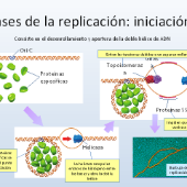 Memory Biología Molecular 1Versión en línea Memorama Relaciona las cartas, son preguntas y respuestas asociada para realizar un par por MARIA DE LOS ANGELES JUAN PINEDA ¿Qué enzima rompe los puentes de hidrógeno de la doble hélice permitiendo el avance de la horquilla de replicación? Ribonucleoproteína con actividad de ADN polimerasa dirigida por ARN. Capaz de sintetizar una secuencia determinada de ADN que permite el alargamiento de los telómeros En la Replicación la hebra que se sintetiza dirección 5´- 3´se denomina hebra adelantada. ¿Como se denomina a la cadena retrasada cuya síntesis se realiza de foma discontinua? Pueden sintetizar nuevas cadenas de ADN a partir de una hebra patrón o molde. Sintetiza la cadena complementaria de forma continua en la hebra adelantada y de forma discontinua en la hebra rezagada. La REPLICACIÓN comienza simultáneamente en muchos lugares favoreciendo la rapidez. Sintetiza el cebador de ARN necesario para la síntesis de la cadena complementaria a la cadena rezagada Unión de dNTP (desoxiribonucleótido) complementario a la hebra molde según la ley de Chargaff Evitan la formación de los puentes de H entre las dos cadenas separadas por la helicasa y permite que se copie Cada replicación de una molécula de ADN recién sintetizada conserva una de las cadenas originales y la otra es sintetizada de novo ¿La síntesis de ADN se lleva a cabo en dirección ? Fase de la replicación en donde comienza el desdoblamiento de complejos de nucleosoma y cromatina, dejan al ADN accesible para que las enzimas abran la doble hélice. Une los fragmentos de Okazaki Cataliza la formación del enlace fosfodiéster entre nucleótidos continuos ¿Qué enzima impide que el ADN se enrede debido al superenrollamiento producido por la separación de la doble hélice?