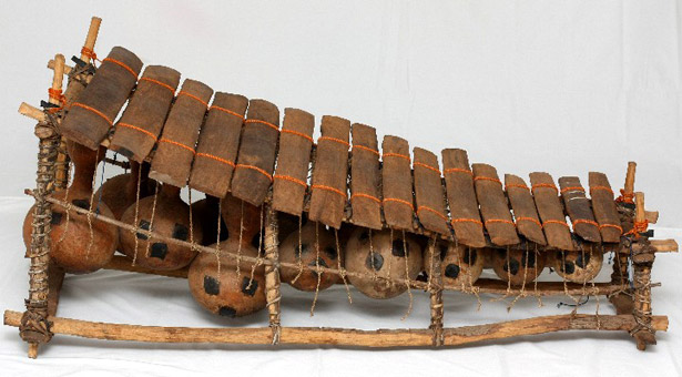 El balafón es un xilófono hecho con láminas de madera. Los resonadores son calabazas huecas de diversos tamaños. El sonido se produce golpeando las láminas con baquetas almohadilladas con tela, cuero o caucho. Pertenece a la familia de los idiófonos de afinación determinada y es propio de África Occidental y Central. Normalmente se emplea para acompañar danzas y cantos de diversión.