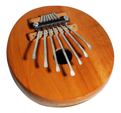 La kalimba, es un idiófono formado por varillas de metal sujetas sobre una caja de resonancia, que suenan cuando se pulsan con los dedos pulgares. Por esta razón en occidente se le llama “piano del pulgar”. Está muy extendido por gran parte de África negra, principalmente en Tanzania y Zimbawe. En muchas ocasiones se toca para acompañar el canto y también la narración de cuentos y fábulas. También se utiliza como instrumento solista y combinada con xilófonos u otros instrumentos.