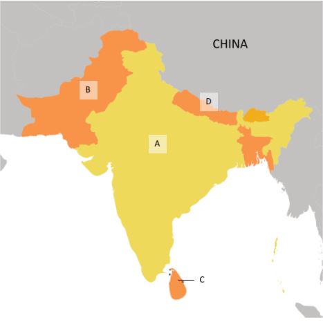 South Asian GeographyVersión en línea Correctly identify the countries of South Asia! por Hilary Morrow 1 Sri Lanka 2 Palistan 3 India 4 Nepal 5 Indian Ocean 6 Himalayan Mountains 7 China