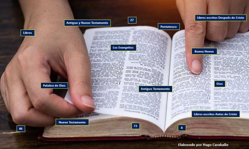 Actividad sobre La BibliaVersión en línea Haz click en la respuesta correcta y consigue los 100 puntos. ¡Mucho ánimo! por Hugo Caraballo 1 ¿Qué significa la palabra Biblia? 2 La Biblia para nosotros los católicos es... 3 ¿Quién es el autor principal de la Biblia? 4 ¿Cómo se divide la Biblia? 5 ¿Qué contiene el Antiguo Testamento? 6 ¿Cuántos libros tiene el Antiguo Testamento? 7 ¿Qué contiene el Nuevo Testamento? 8 ¿Cuántos libros tiene el Nuevo Testamento? 9 ¿Cuántos libros en total tiene la Biblia Católica? 10 Los libros Proféticos los encontramos en el... 11 Los Evangelios los encontramos en el... 12 ¿Cuántos Evangelios son en total? 13 San Mateo,San Marcos, San Lucas y San Juan, son... 14 Los primeros 5 libros de la Biblia se conocen con el nombre de... 15 ¿Qué significa la palabra Evangelio?