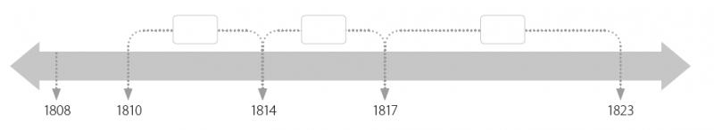 Proceso de independencia ChileVersión en línea Observa la siguiente línea de tiempo sobre el proceso de independencia de Chile y luego completa los periodos y acontecimientos más importantes. por Jaime Rodríguez 1 Desastre de Rancagua 2 Primera junta de gobierno 3 Abdicación de O'higgins 4 Reconquista 5 Invasión Napoleónica a España 6 Patria Nueva 7 Patria Vieja 8 Batalla de Chacabuco