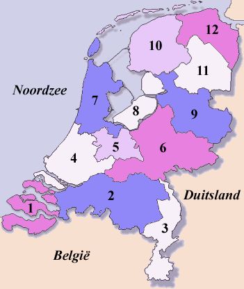 Provincies van NederlandVersión en línea Deze oefening kun je gebruiken om de provincies van Nederland te oefenen por jasper bloemsma 1 Zeeland 2 Noord-Brabant 3 Limburg 4 Zuid-Holland 5 Utrecht 6 Gelderland 7 Noord-Holland 8 Flevoland 9 Overijssel 10 Friesland 11 Drenthe 12 Groningen